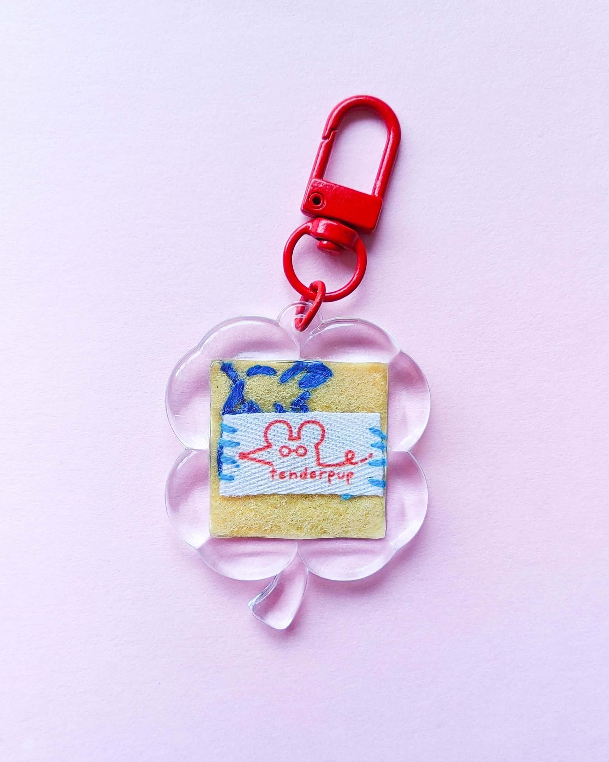 Materials: Polyester felt, cotton fabric, hand embroidered thread, acrylic keychain case